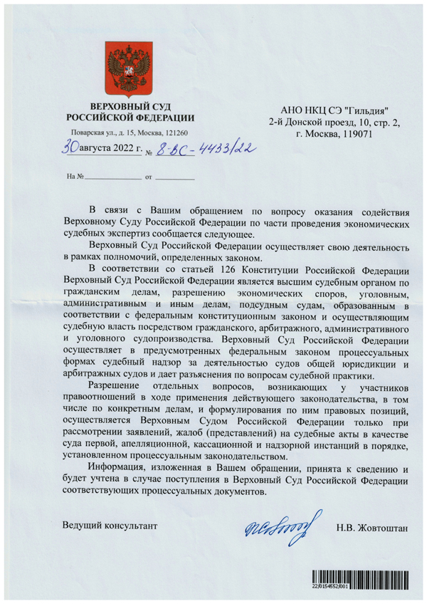 ООО «Белочка» обратилось в 2012 году в АНО НКЦ СЭ «Гильдия» с просьбой оказать услуги по строительно... Подробнее >